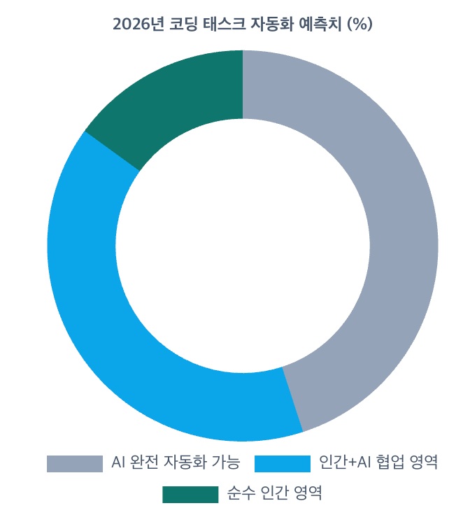 복잡성의 역설: 코딩 비용이 낮아지면 기업은 개발자를 해고하는 대신, 더 많은 기능을 구현하고 더 자주 배포하는 전략을 택합니다. 깃허브의 풀 리퀘스트(PR) 수가 전년 대비 23~25% 증가했다는 점이 이를 뒷받침합니다.
